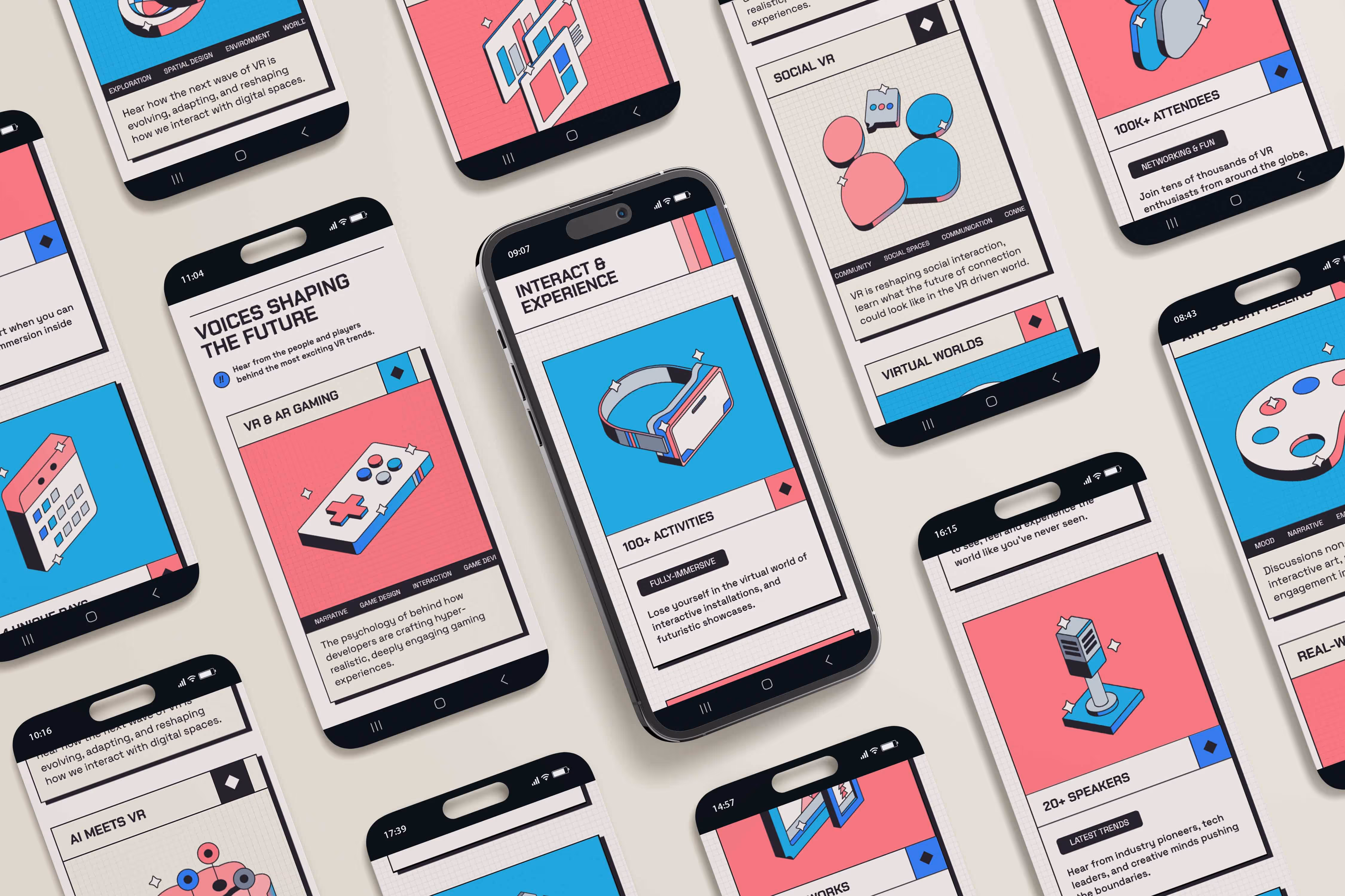 The design intentionally leans into motion to mirror the experience of travelling through multiple portals. Using custom animations and interactions combined with a futuristic aesthetic that aligns with the direction of the VR industry, the design positions Portal as a bold, confident newcomer.